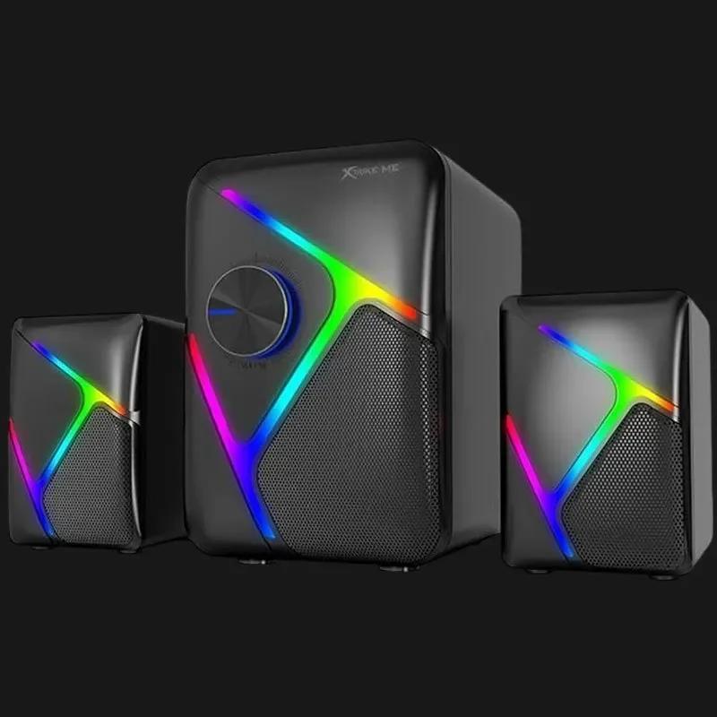 XTRIKE ME SK610 2.1 مكبرات صوت ستيريو سلكية للألعاب مع مضخم صوت، إضاءة RGB ستيريو باس 11W – إضاءة LED قوس قزح – مقبض التحكم بالصوت سهل الوصول