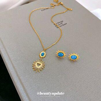 طقم قلادة وأقراط عصري بتصميم قلب ونجمة شمس وزركون أزرق