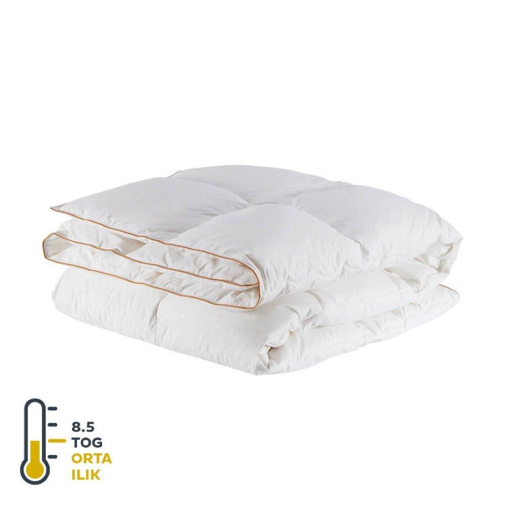 Penelope Bedroom Bronze Goose Down Quilt İs The Spring Product Of Penelope Quilt Collection. İts Filling Contains 30% Class 1 Goose Feathers (30% Down, 70% Back Feathers). İt İs A Spring Medium Warm Quilt With A Heating Degree Of 8.5 Tog. The Fabric Of The Duvet İs 100% Cotton Feather-Proof "Down Proof" Licensed Nomite Fabric. This Nomite Licensed Fabric Does Not Remove The Fluff İn İts Content, Nor Does İt Allow The Formation Of House Dust Mites, Bacteria And Fungi On İt.