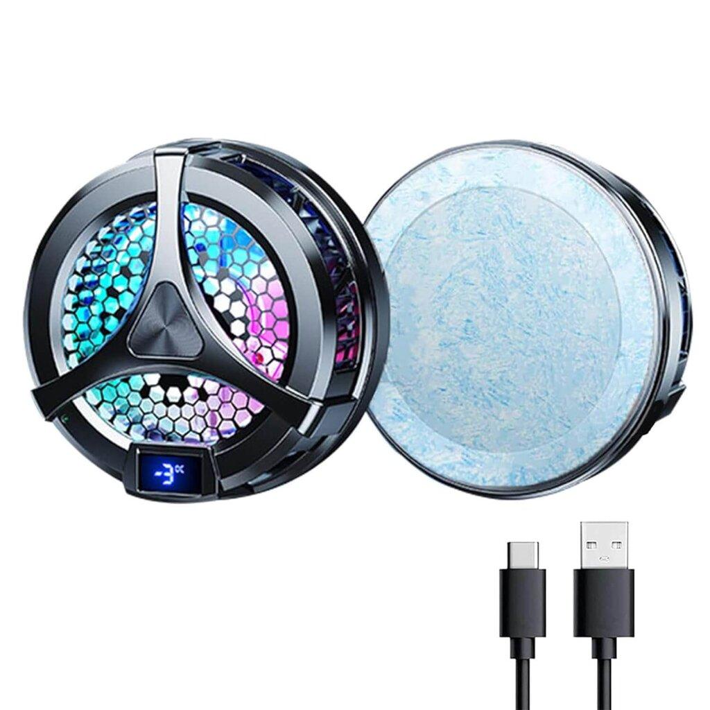 Product Name: Radiator Mobile phone wirele charging output: 15W Material: ABS+aluminum alloy+copper+silicone Interface: Type-c input Input current: 9V3V Weight: about 64 grams Duaear mode: cooling gear/extremely cold gear Air volume data: 5500/min speed Product size: 59.5X59.5X23mm Technology: semiconductor refrigeration Compatibility: Compatible with mobile phones (tablets) Other configuration: RGB lighting effect + 2-speed control (ice seal mode + extreme cold mode), temperature control display Packing l