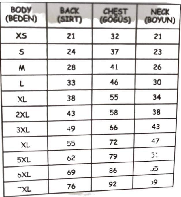 Size : LBack  : 33cmChest : 46cmNeck : 30Weight Range : 3.5 – 5.0 kg