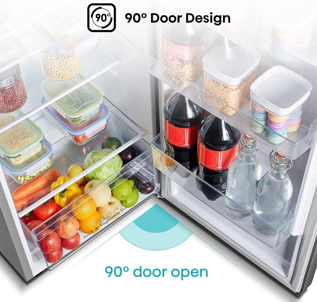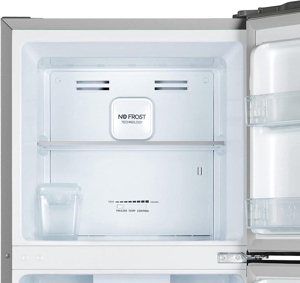 Hisense RT328N4DGN top mount refrigerator with total no frost technology, big door balcony, 90° door design, multi air flow, and LED lighting. This full-sized freezer-on-top refrigerator has a capacity of 328 liters and dimensions of 55D x 60W x 165H centimeters.