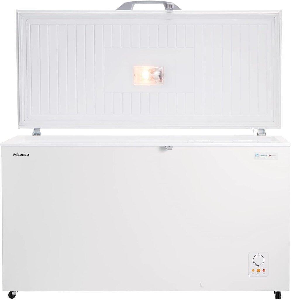 The Hisense 260 Liter Chest Freezer (Model FC-26DT4SAW) is a white, single-door freezer designed for efficient freezing. It features a glass door, convertible functionality, LED lighting, mechanical temperature control, adjustable legs and a lock for secure storage. Includes a high-quality basket with soft-round corners and recessed handles and sliding lids.